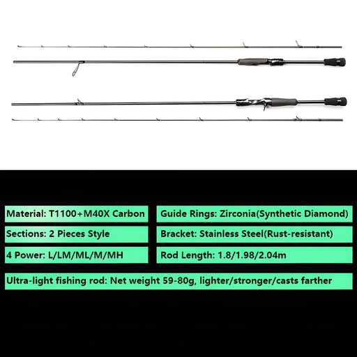 Canne à pêche ultralégère Fiber de carbone T1100 - Spinning/Casting 1.8m-2.04m