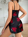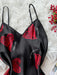 Chemise de Nuit Saint-Valentin en Satin Imprimé Lèvres Rouges - Col en V, Dos Nu